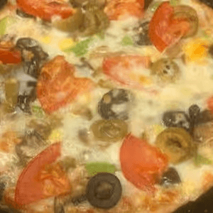 Onions, green peppers, mushrooms, black & green olives, tomatoes.